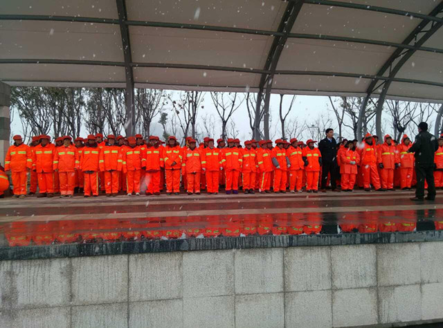 2月28日上午,雪花飄飄,建發(fā)公司市政物業(yè)部組織2015年度環(huán)衛(wèi)保潔作業(yè)人員進行崗前培訓(xùn)和安全技術(shù)交底工作。新招錄的環(huán)衛(wèi)工人統(tǒng)一穿著嶄新的工服,推著嶄新的保潔三輪車,列隊集結(jié),整裝待發(fā)。