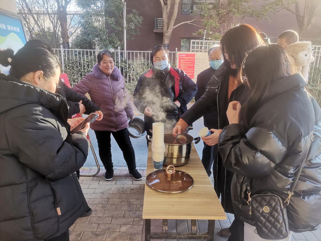 活動前,工作人員早早地就開始做準(zhǔn)備了。她們將紅棗、桂圓、蓮子、赤豆等材料洗凈、浸泡、熬制。8點(diǎn)多,在小區(qū)門口擺起了送粥的愛心攤,天氣雖然寒冷,但工作人員熱情卻絲毫不減,熱情地招呼過往的居民品嘗香暖四溢的臘八粥,讓大家享受了這場冬日的“暖宴”。收到臘八粥的居民向工作人員表示了感謝:“物業(yè)真好,讓我們感受到了關(guān)愛。