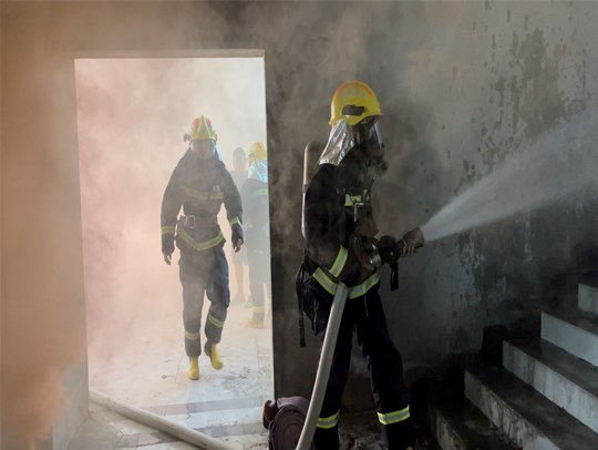 下午15點(diǎn)50分,科技物流園內(nèi)部突然起火,現(xiàn)場濃煙滾滾,相關(guān)工作人員立即采取自救措施,通知義務(wù)消防員有序組織人員疏散,消防官兵到場后,立即迅速組織對被困人員實(shí)施救援,及時(shí)堵截火勢、控制火情,經(jīng)過近30分鐘的滅火救援戰(zhàn)斗,大火被徹底撲滅,演練取得了圓滿成功。
