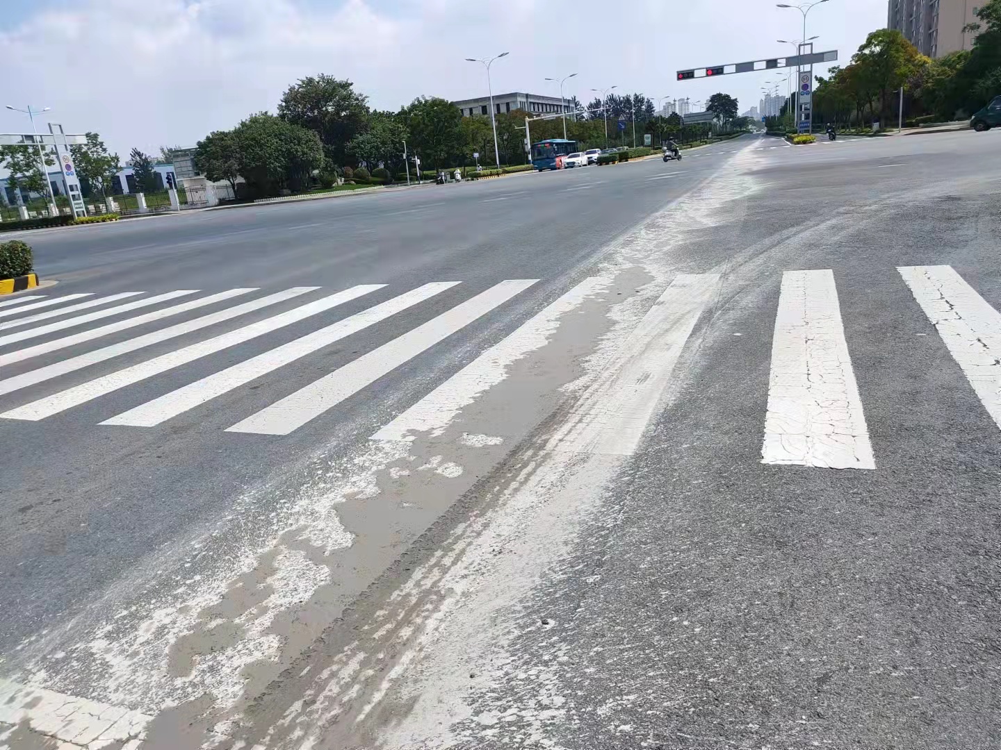 為防止混凝土大面積擴(kuò)散和凝固,無(wú)法清除造成道路“牛皮癬”,保潔單位快速響應(yīng),灑水車(chē)、洗掃車(chē)、高壓清洗車(chē)輪番上陣、聯(lián)合作業(yè),經(jīng)過(guò)近4個(gè)小時(shí)的高效處置,被污染的路面煥然一新,道路恢復(fù)暢通。