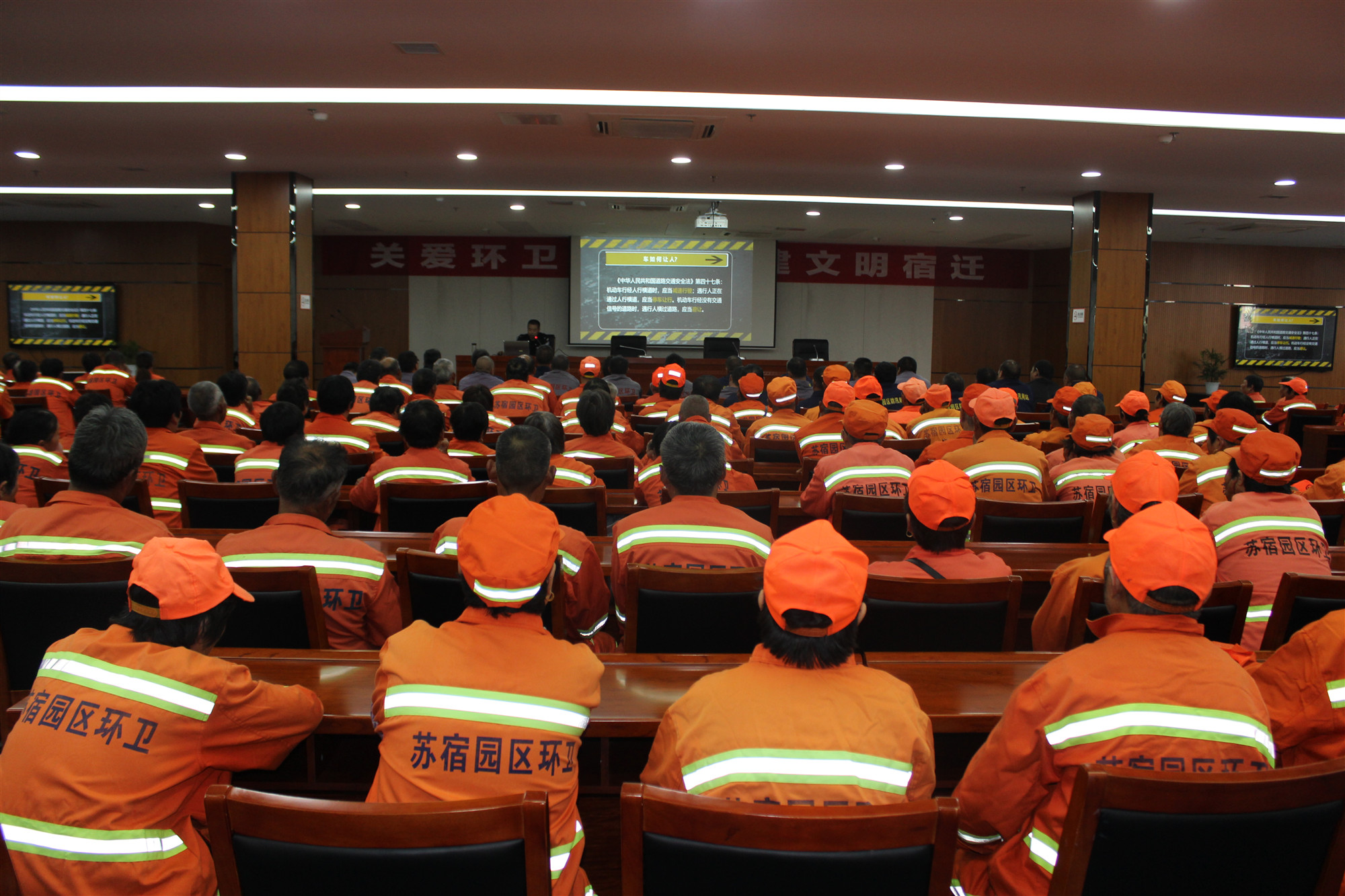 10月24日14時30分,園區(qū)邀請市交警大隊劉強警官為全體環(huán)衛(wèi)工人講了一堂專項交通安全知識講座,通過案例和理論相結(jié)合的授課,全面提高了環(huán)衛(wèi)工人的交通安全意識。安全專題講座后,還組織所有環(huán)衛(wèi)工人觀看了愛國題材電影《周恩來萬隆之行》,增強了環(huán)衛(wèi)職工民族自尊心和自豪感,培養(yǎng)了他們的愛國情懷,激發(fā)他們干好環(huán)衛(wèi)工作,為建設(shè)文明宿遷添磚加瓦。