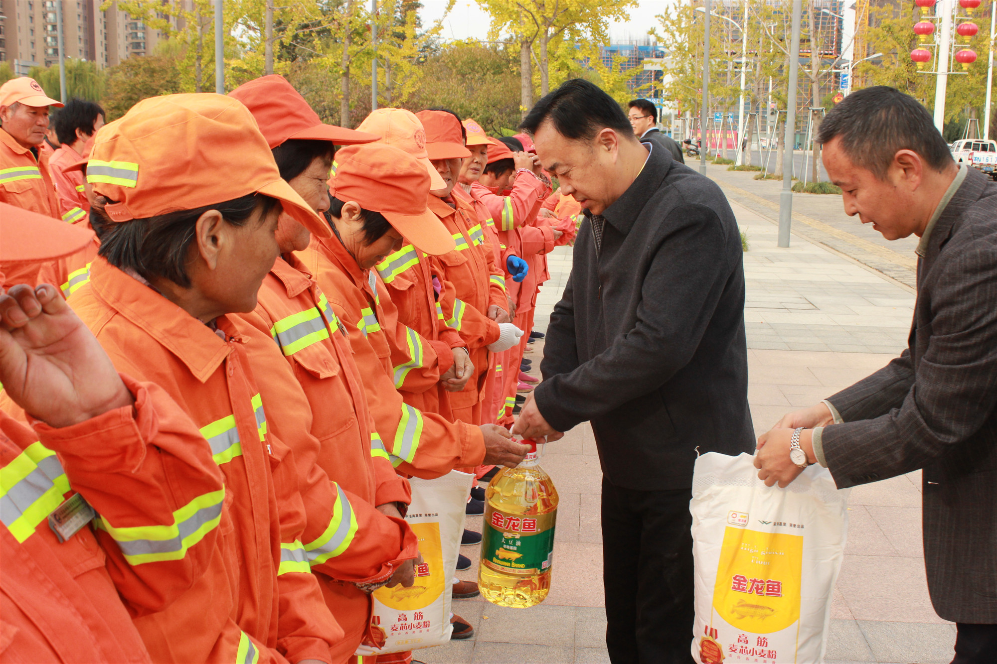 10月26日8時30分,園區(qū)黨工委委員、管委會副主任、規(guī)劃建設(shè)局局長邢全男帶隊,親切慰問了環(huán)衛(wèi)工人,并向她們送上了節(jié)日的慰問,感謝她們?yōu)閳@區(qū)環(huán)境衛(wèi)生作出了貢獻,并向她們發(fā)放了慰問品。