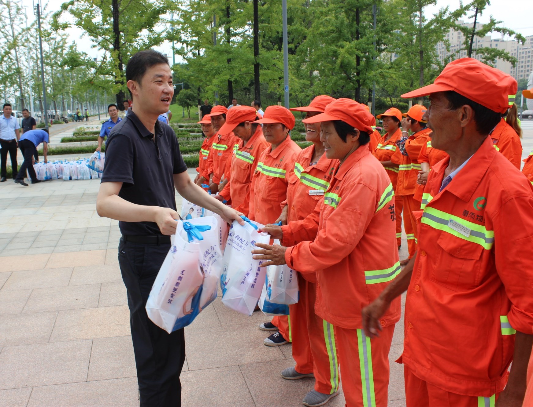 7月26日上午,園區(qū)黨工委委員、管委會副主任、規(guī)劃建設(shè)局局長許紹杰帶隊,親切慰問了奮戰(zhàn)在一線的城市維護(hù)作業(yè)人員,給他們送去了夏日里的問候和黨的關(guān)懷,感謝他們?yōu)閳@區(qū)的整潔、優(yōu)美城市環(huán)境所作出的貢獻(xiàn)。