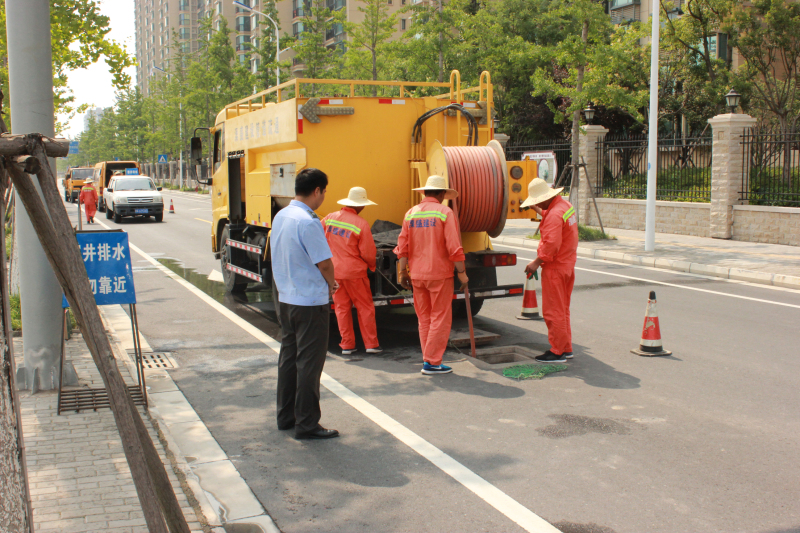 本次演練模擬強(qiáng)降雨期間,指揮部接到巡查組報(bào)告,園區(qū)某道路出現(xiàn)嚴(yán)重積水現(xiàn)象。指揮部立即通知搶險(xiǎn)組前往處置,經(jīng)查為管道堵塞所致。搶險(xiǎn)組立即調(diào)動雨水管道疏通車趕往現(xiàn)場,經(jīng)過緊急疏通管道恢復(fù)暢通,路面積水消除。隨后對該段管道進(jìn)行CCTV檢測,排查堵塞原因,為后期養(yǎng)護(hù)提供依據(jù)。