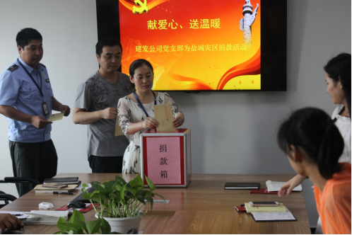 黨課結(jié)束后,黨支部組織開展“獻愛心、送溫暖,向鹽城災(zāi)區(qū)捐款活動”,19名黨員、預(yù)備黨員和入黨積極分子極響應(yīng)號召,踴躍參與到捐款行列中,向受災(zāi)地區(qū)群眾奉獻自己的一份愛心,共獲得捐款2900元。同時,黨支部也向公司全體職工發(fā)出了向災(zāi)區(qū)捐款的倡議,目前捐款工作正在進行,捐款活動結(jié)束后,獲得的款項將通過園區(qū)工委辦公室轉(zhuǎn)交鹽城災(zāi)區(qū)。