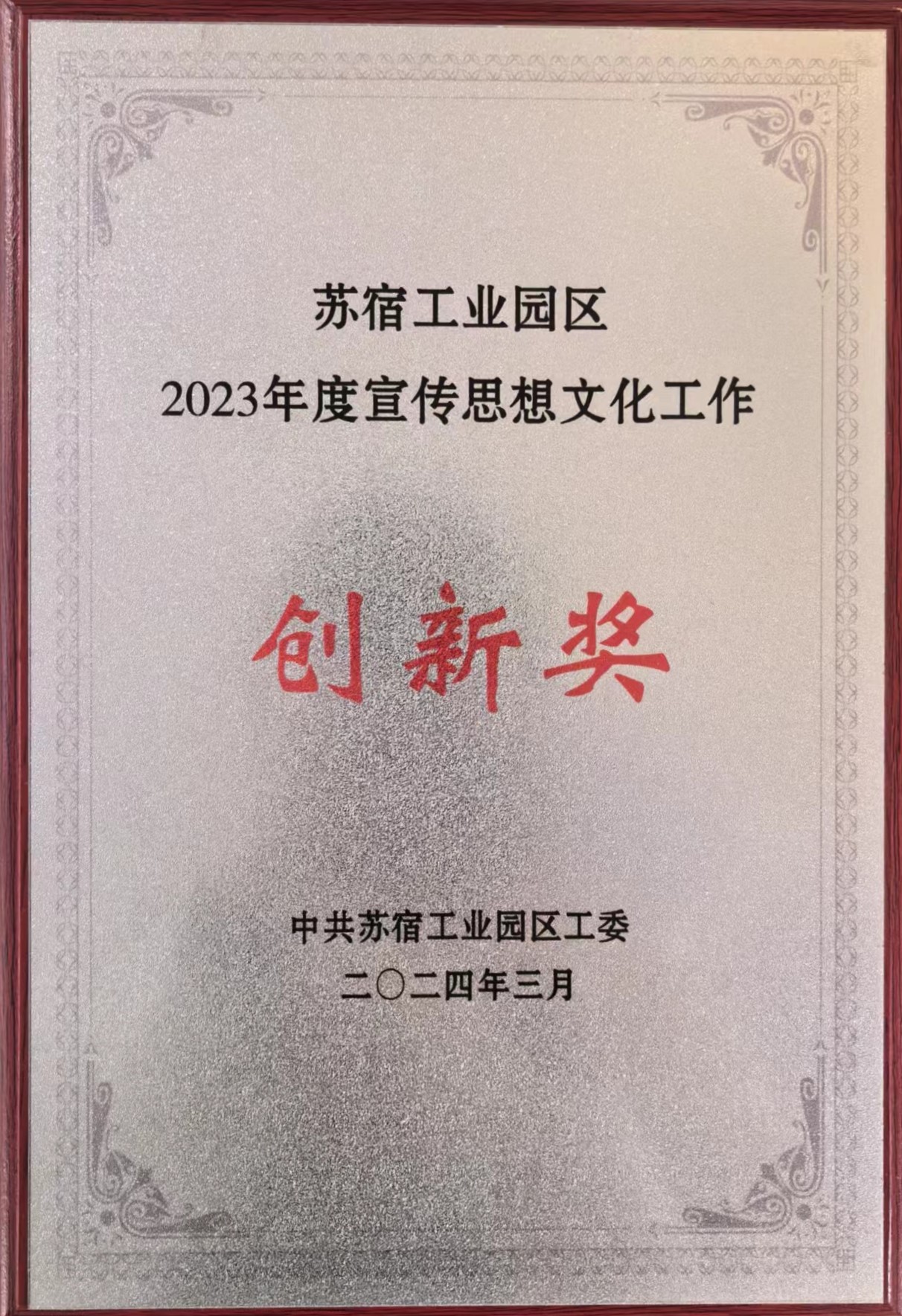 蘇宿工業(yè)園區(qū)2023年度宣傳思想文化工作創(chuàng)新獎
